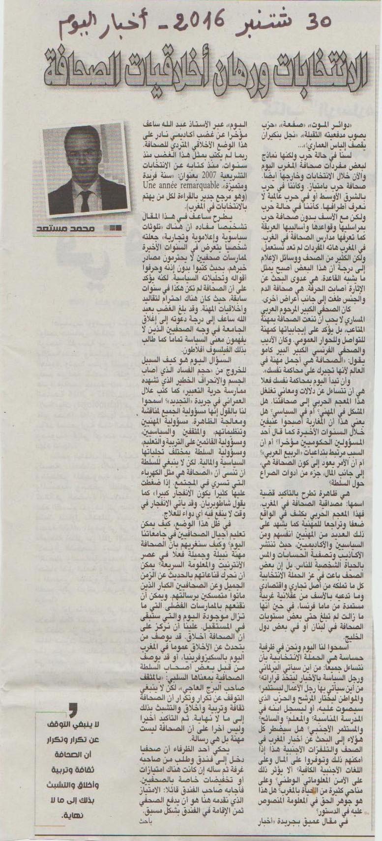 بيْنما تطالبُ عدد من الهيئات المدنية المكلفة بملاحظة الانتخابات في المغرب برفع وزارة الداخلية يدَها عن العملية الانتخابية، وإناطة مهامِّ الإشراف عليها إلى لجنة عُليا مستقلة، على غرار ما هو معمول به في دول أخرى، أيّدَ عبد الله ساعف، الأكاديمي المغربي ورئيس مركز الدراسات والأبحاث في العلوم الاجتماعية، إبقاء العملية الانتخابية تحتَ إشراف وزارة الداخلية.