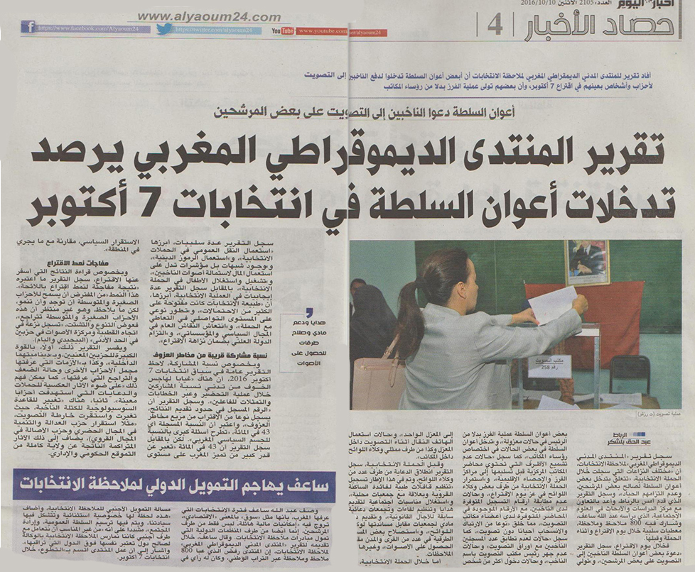 خامسا – بعض الدروس المستخلصة من خلال عملية الملاحظة للانتخابات التشريعية ل 7 أكتوبر 2016: